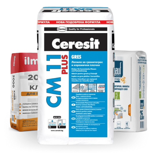 Клеи для плитки, керамогранита и других облицовочных материалов, обладающие высокой адгезией и устойчивостью к влаге.